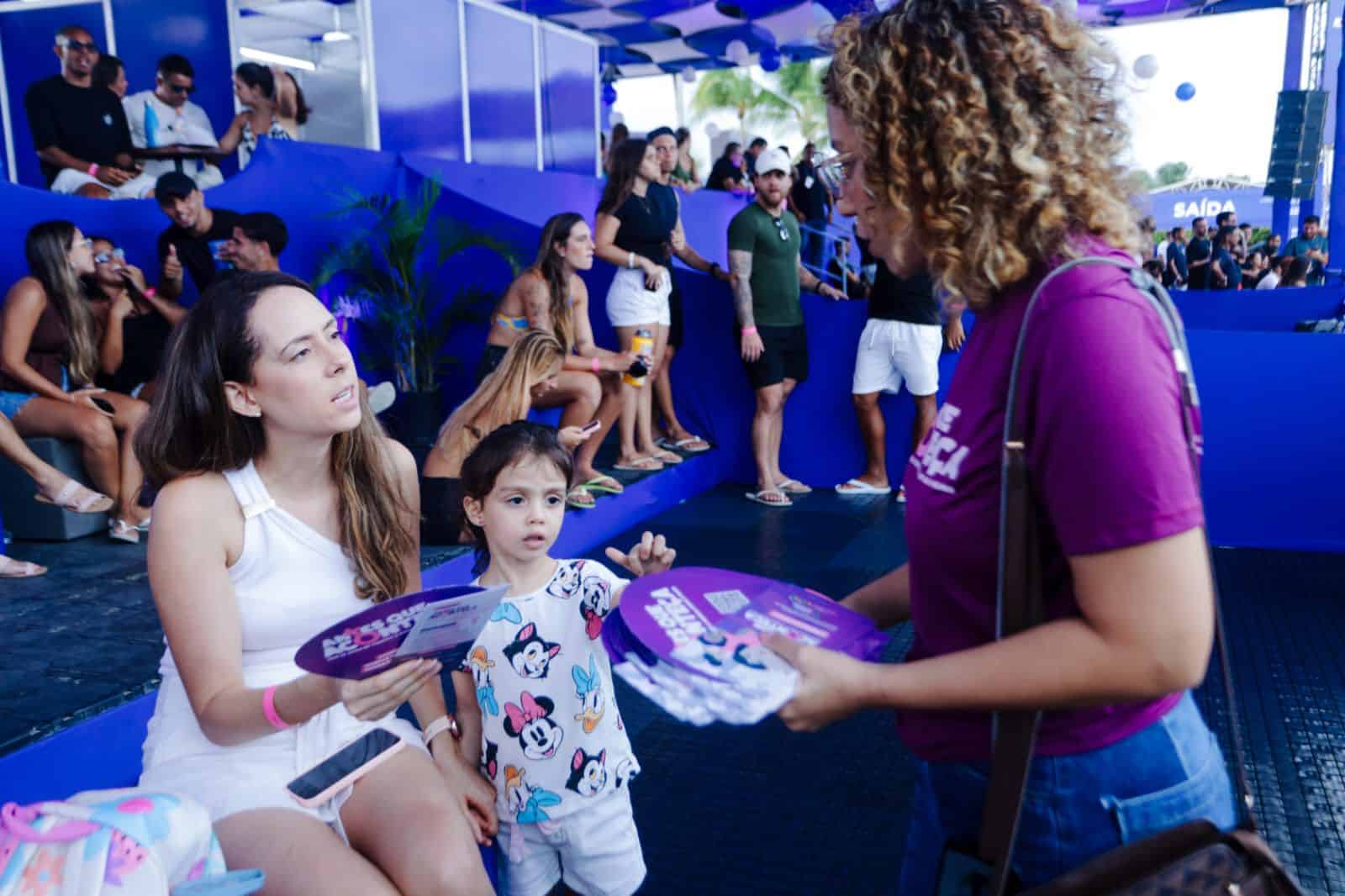 O público que acompanhou as disputas de futevôlei recebeu leques informativos com orientações sobre prevenção e combate à violência. A mobilização marcou a abertura das ações do mês de março, em referência ao Dia Internacional da Mulher, ampliando a presença do programa em espaços de grande circulação.