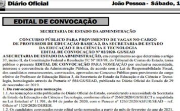 Governo da Paraíba convoca quase 600 professores aprovados em concurso