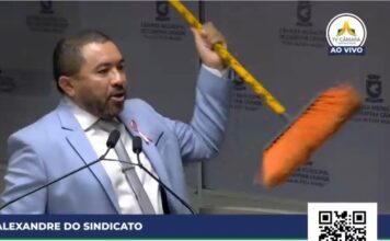 Vereador leva vassoura à tribuna da CMCG para defender Bruno