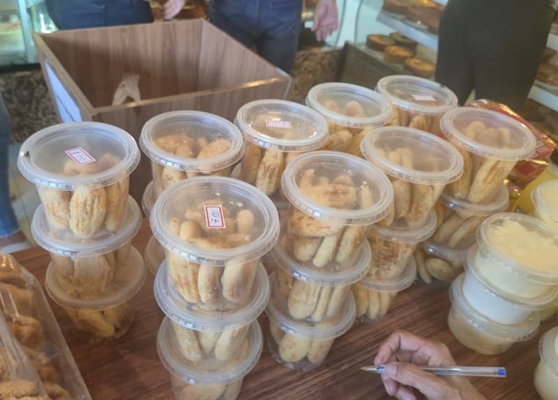 Entre os produtos retirados de circulação para evitar riscos à saúde pública estão 19 unidades de queijo de manteiga, 12 unidades de nata, 27 caixas de biscoitos, 35 bandejas de salgados, duas garrafas de manteiga e cinco pacotes de cocorote.
