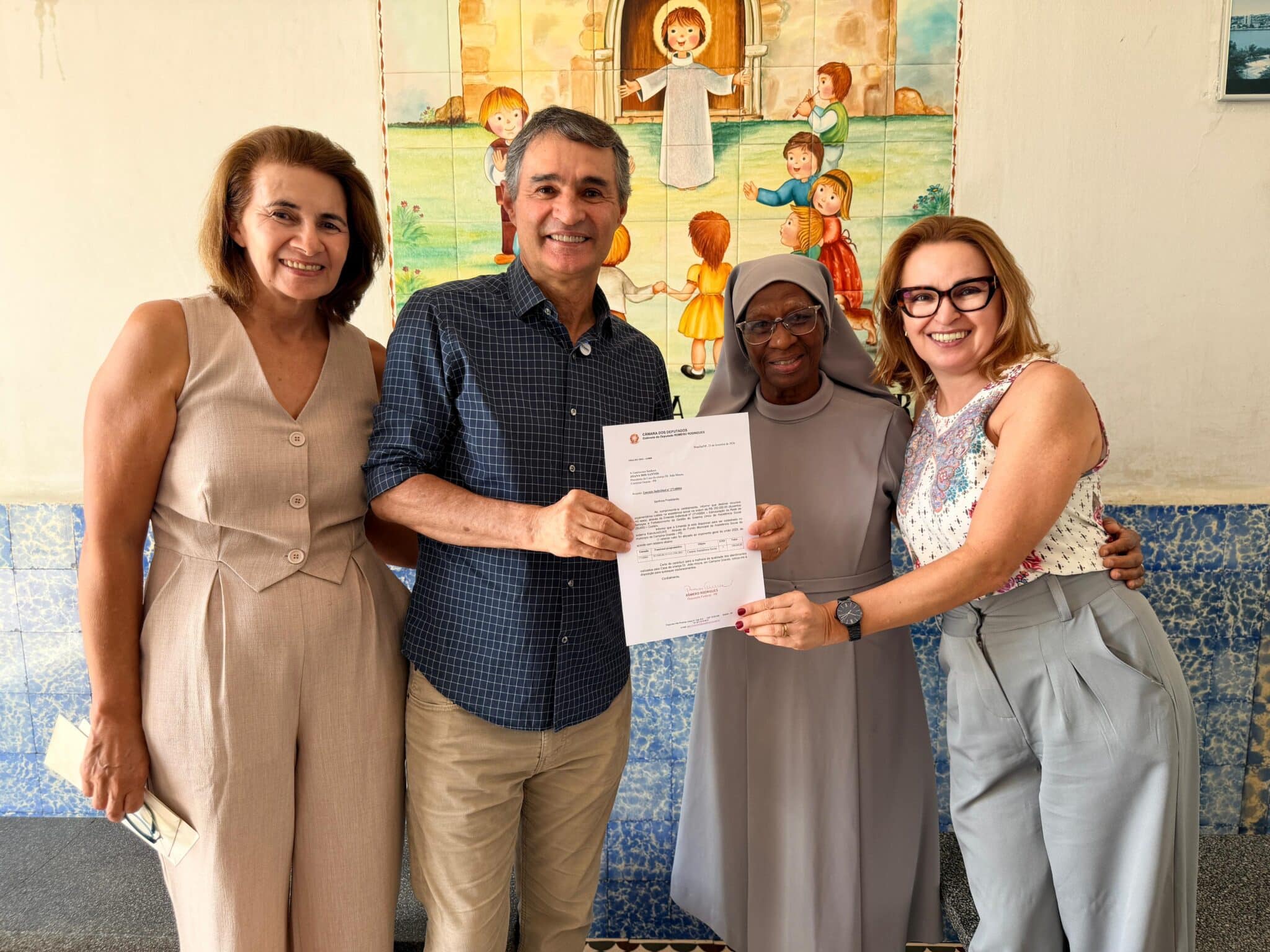 O deputado federal Romero Rodrigues realizou uma visita à Casa da Criança Dr. João Moura, em Campina Grande, onde entregou o ofício confirmando a destinação de mais R$ 200 mil em emenda parlamentar, recurso previsto para o primeiro semestre de 2026.